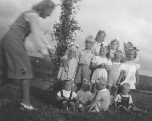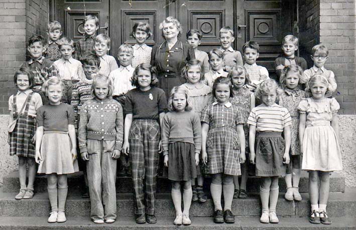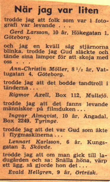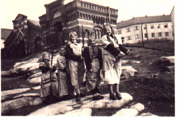 klänningar i "bäck o bölja". Pojkarna med vattenkammat hår och alla hade "finare"