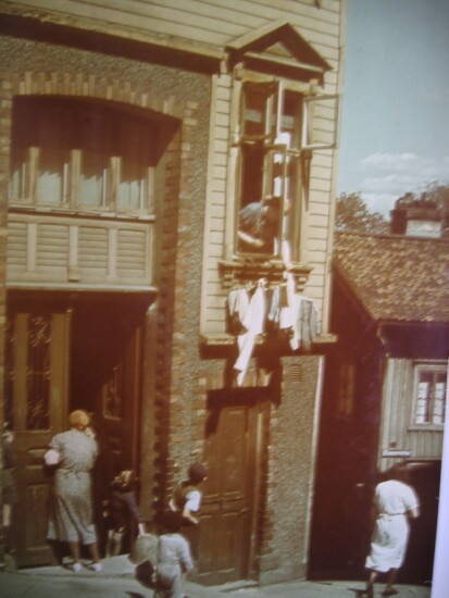 hänger ännu kvar mellan husen. Någon har burit ut kruk-
