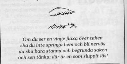 Vi går alla omkring med en vinge, en dröm, en längtan, en sång.