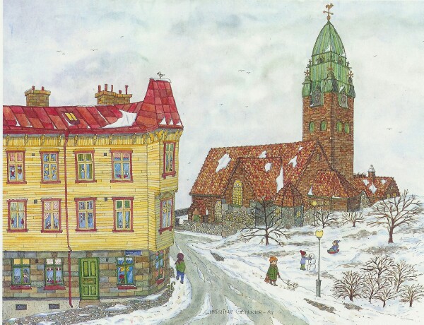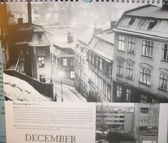 på kajen. Den snöiga Klamparegatan har spår av trevande tanter som